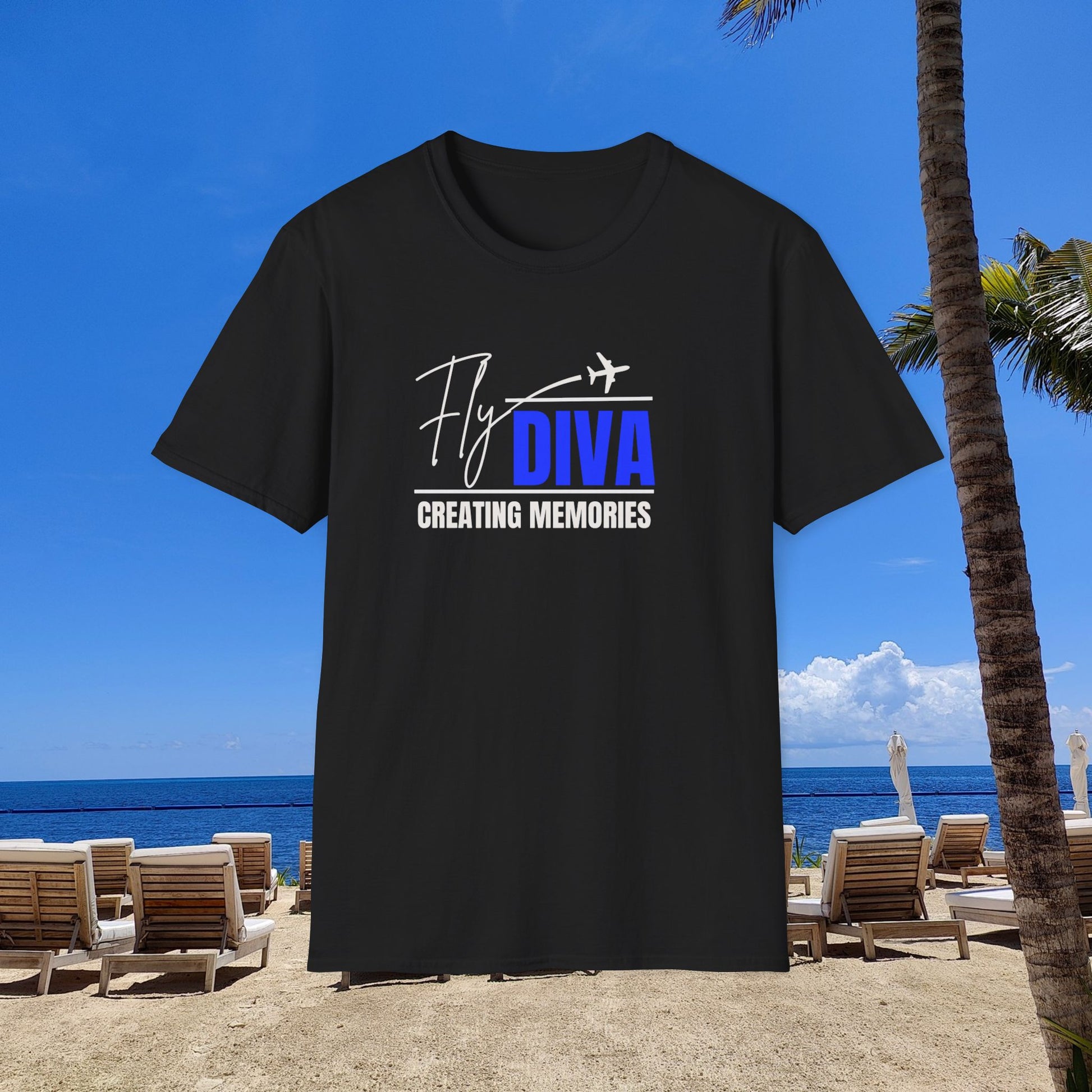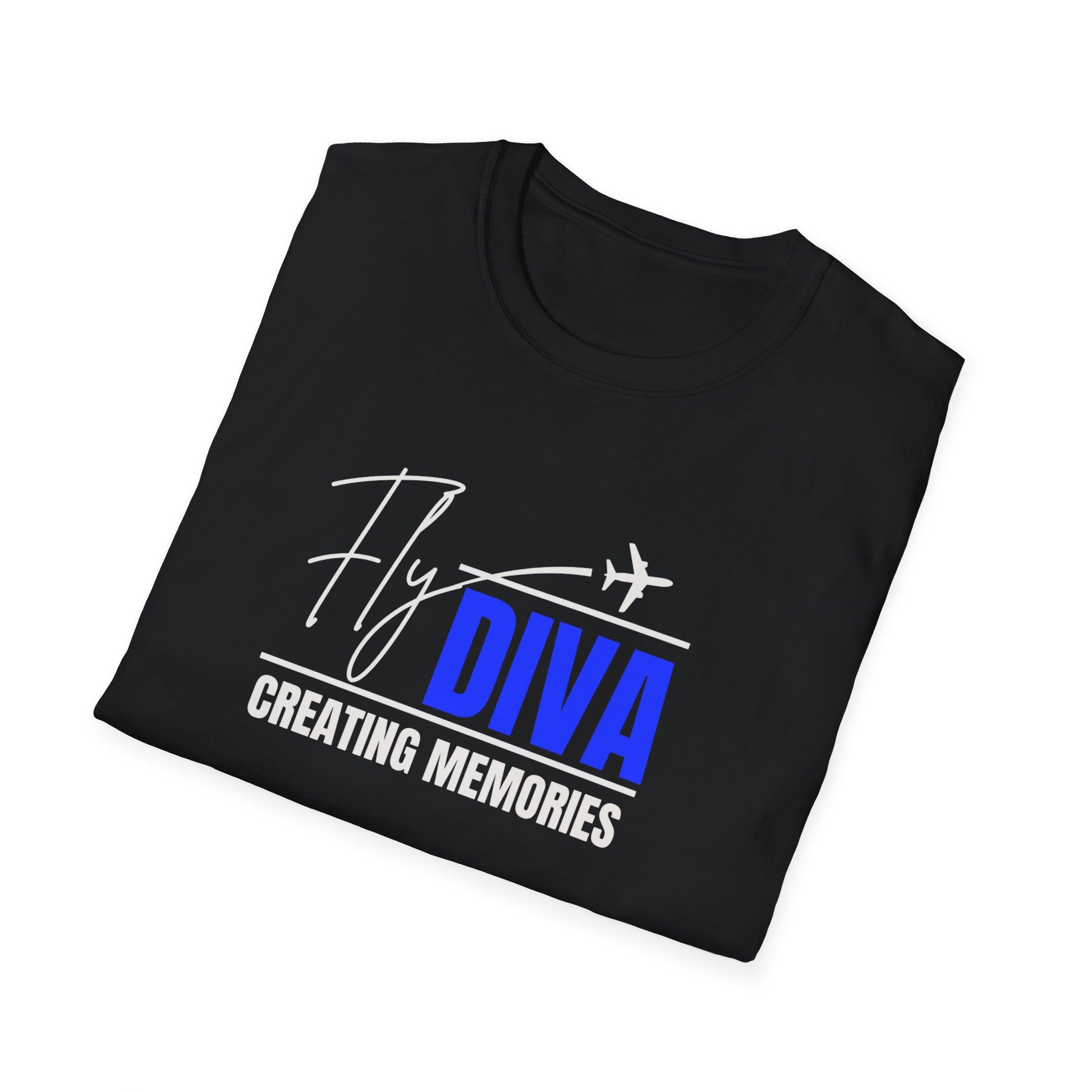 Fly DIVA Unisex Black T-Shirt (BLUE), Travel T-Shirt, Adventure Apparel, Gift for Travelers, Summer Style, Creating Memories Shirt