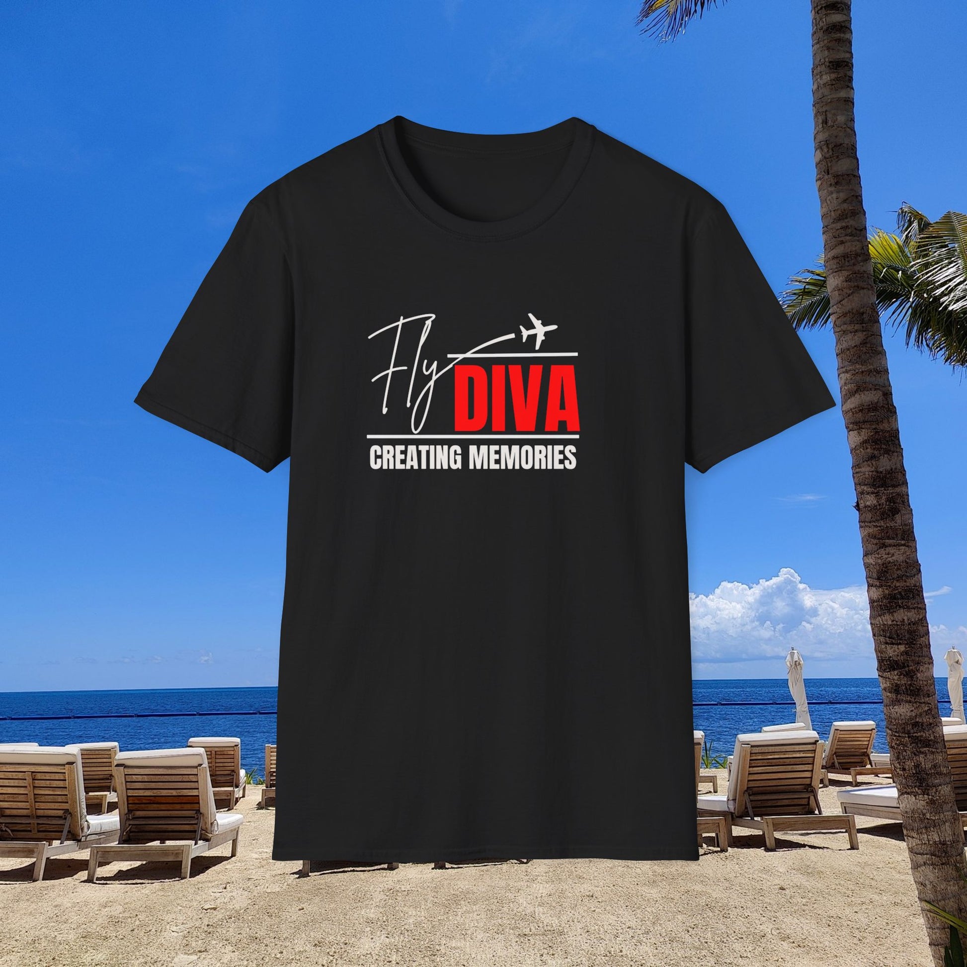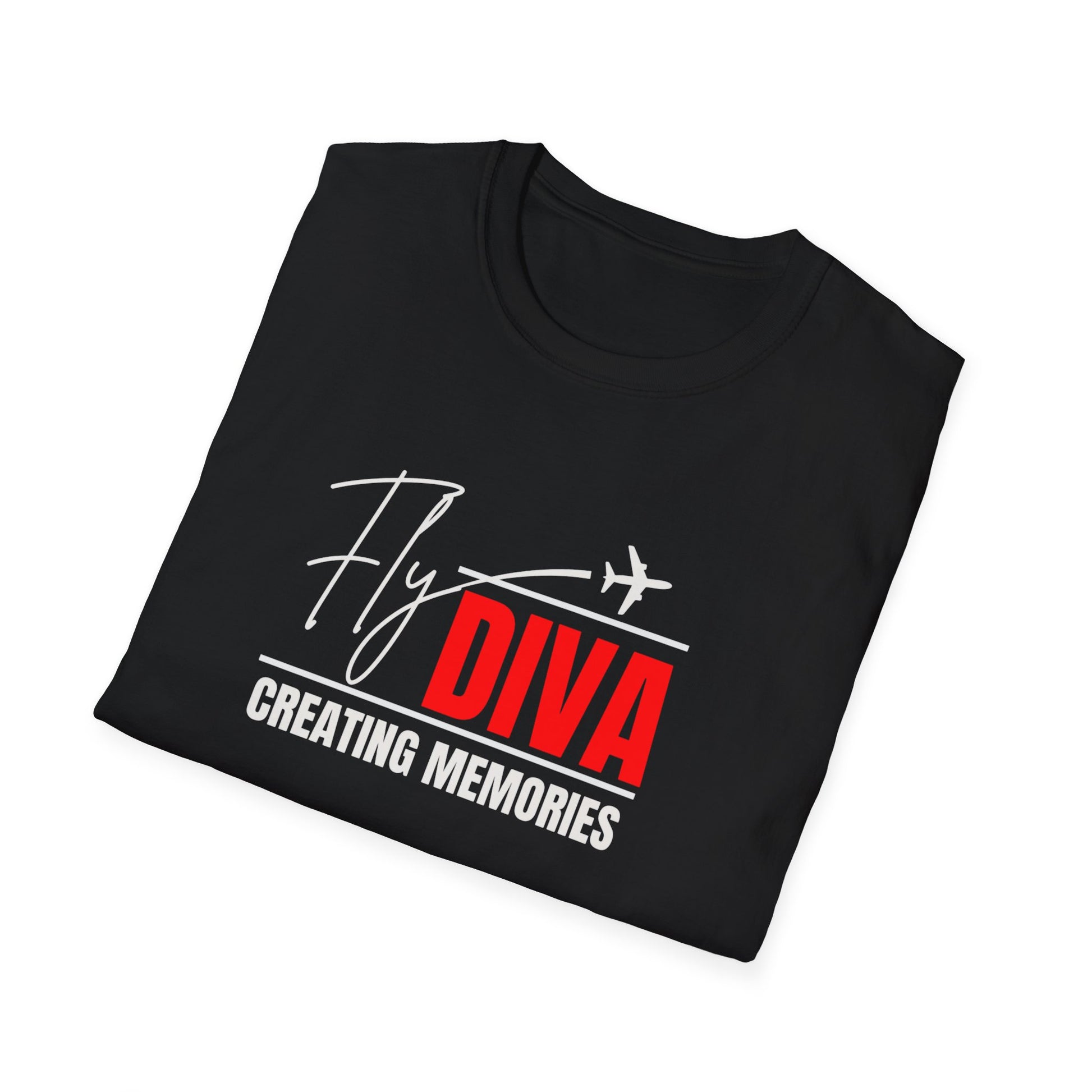 Fly DIVA Unisex Black T-Shirt (RED), Travel T-Shirt, Adventure Apparel, Gift for Travelers, Summer Style, Creating Memories Shirt
