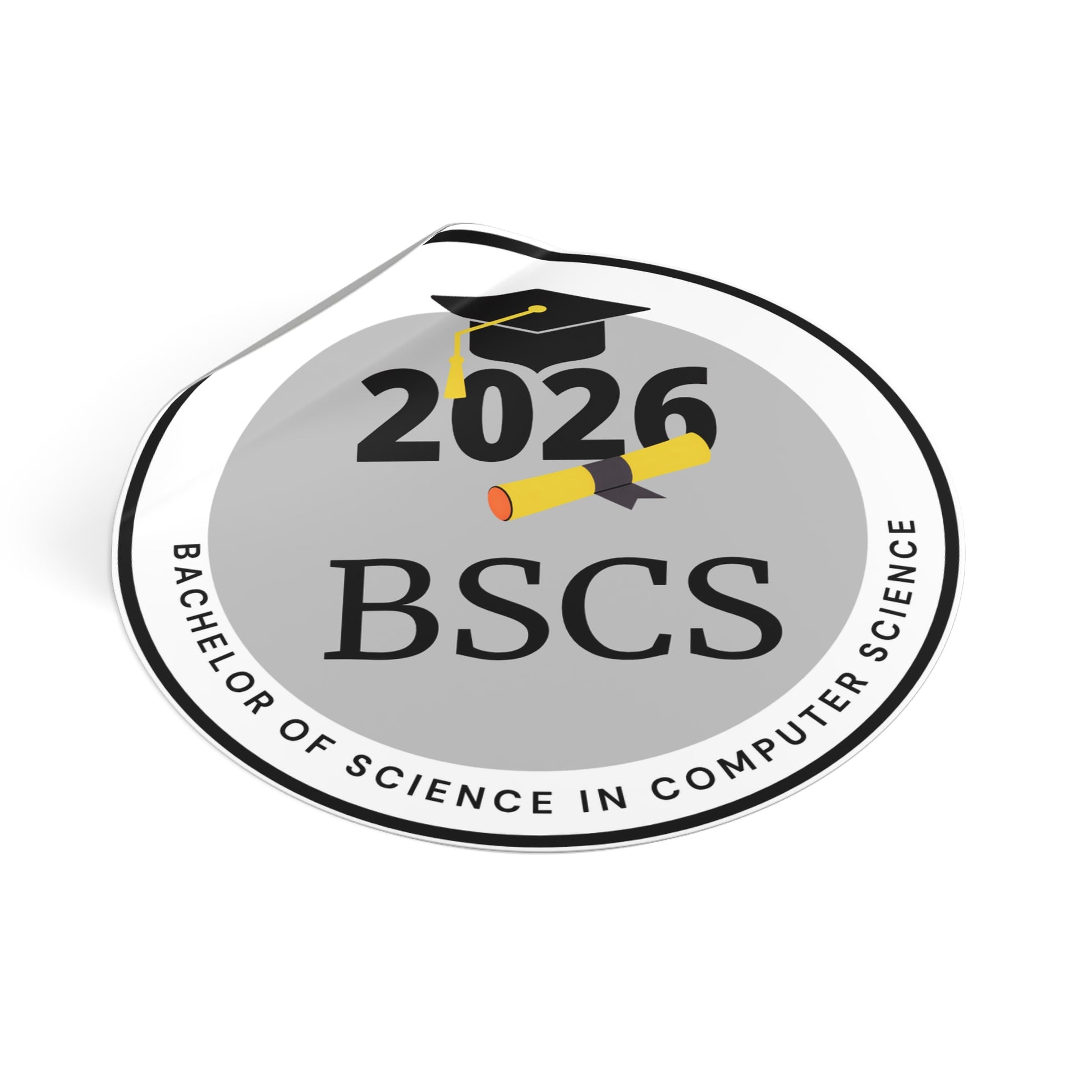 Personalized Vinyl Sticker for the Bachelor of Science in Computer Science, c/o 2026, Future Graduate. This sticker adds a touch of personalization to any surface and is perfect for indoor or outdoor use. Give your laptop, water bottle, or car a custom touch with this vibrant and durable sticker. Ideal for students graduating in 2026 or anyone in the computer science field.